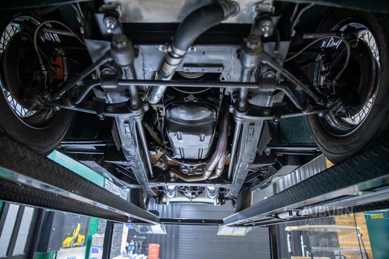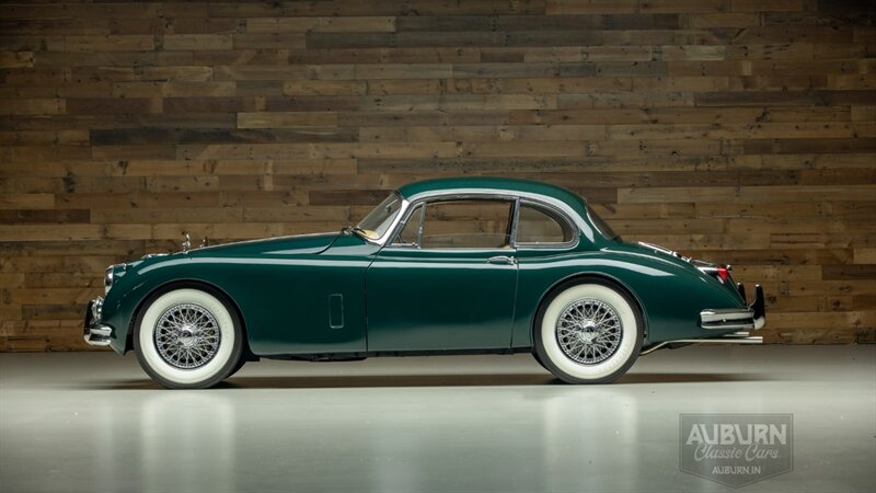The recipient of a complete restoration, this 1958 Jaguar XK150 Fixed Head Coupe was completed in 2020. Draped with a sporting green over a lovely biscuit leather upholstery and tan carpeting, its color scheme is truly timeless. The refined cabin is complemented by an adjustable steering wheel, Jaguar logo seat belts, and a maple-trimmed dashboard. Exterior appointments include chrome bumpers with overriders, Lucas driving lights, fender-mounted mirrors, wing windows, dual exhausts, and knock-off chrome wire wheels wrapped in Firestone Deluxe Champion whitewall tires.
