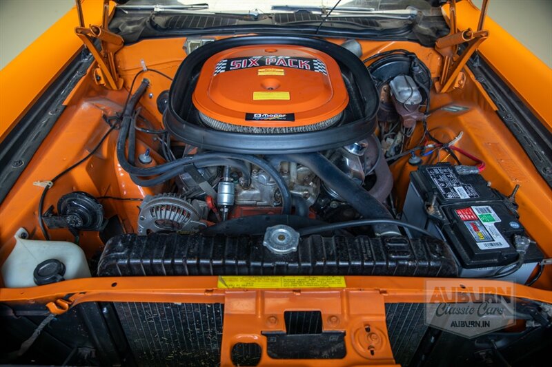 • 340-cubic-inch Six Pack V-8 engine backed by Hurst pistol grip shifter